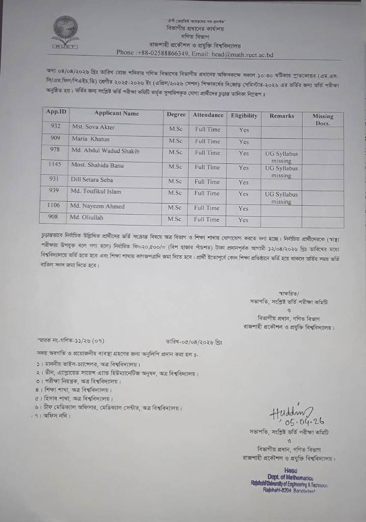 Notice on Course Registration and Commencement of Classes for PG Students, Department of Chemistry, Rajshahi University...