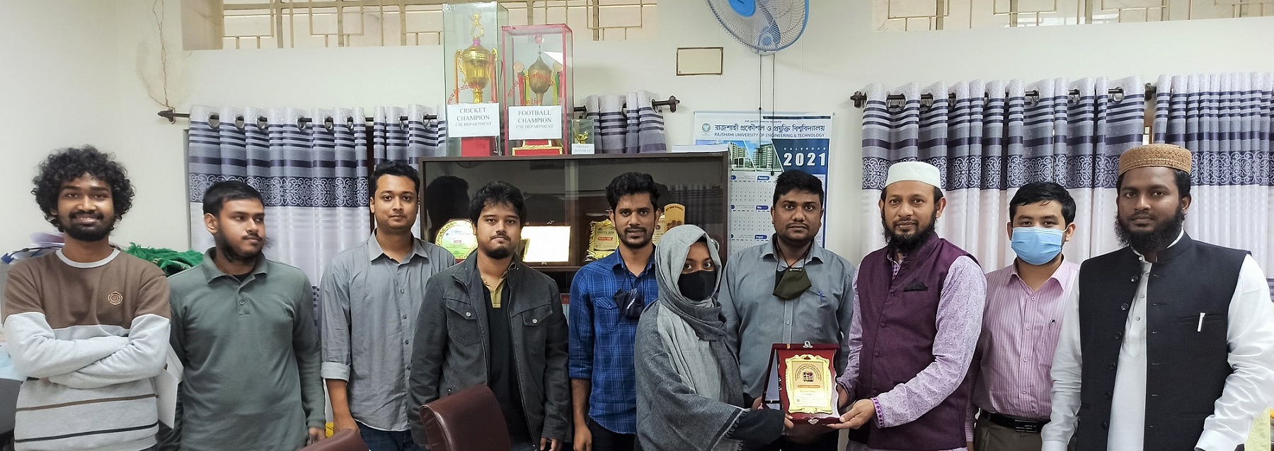 Congratulations to Shegufa Rob for securing the third position at the 12th National Undergraduate Mathematics Olympiad, 2021, Rajshahi region. In these pictures, you can see that the participants along with their prizes are meeting with Prof. Dr. Md. Al Mamun, Sir, Head, CSE, RUET and other presented teachers.