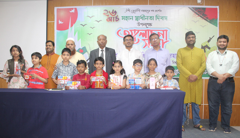 আলোচনা সভা শেষে রুয়েটের শিক্ষক, কর্মকর্তা, কর্মচারীদের সন্তানের অংশগ্রহণে আয়োজিত চিত্রাঙ্কন প্রতিযোগিতায় বিজয়ীদের মাঝে পুরস্কার বিতরণ করেন উপাচার্য অধ্যাপক ড. মো. জাহাঙ্গীর আলম।
