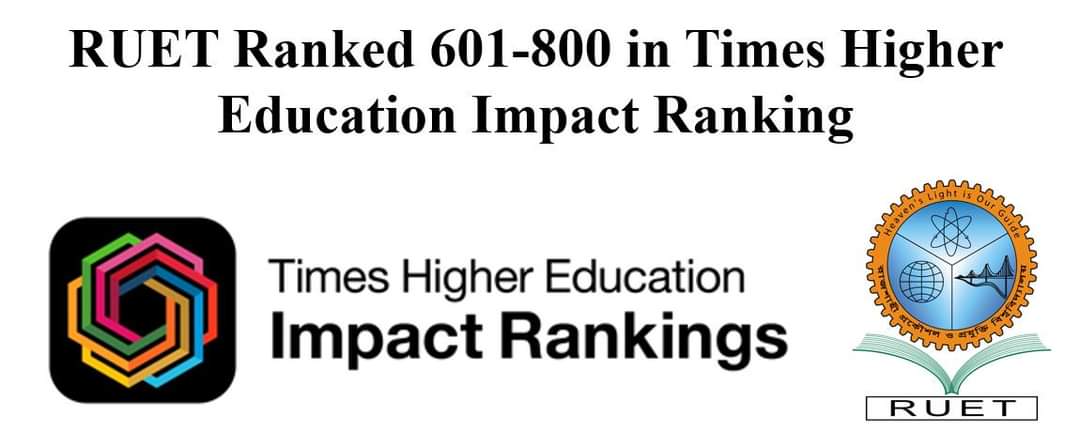 রুয়েট এই বৈশ্বিক র্যাঙ্কিংয়ে ৬০১-৮০০ এর মধ্যে অবস্থান নিশ্চিত করেছে। জাতীয়ভাবে, রুয়েট বাংলাদেশের ৫ম সেরা বিশ্ববিদ্যালয় এবং সরকারি বিশ্ববিদ্যালয়গুলির মধ্যে প্রথম স্থান অর্জনের গৌরব নিশ্চিত করেছে। এই স্বীকৃতি আমাদের টেকসই উন্নয়ন এবং উচ্চ শিক্ষায় উৎকর্ষতার প্রতি আমাদের অবিচল প্রতিশ্রুতিকে প্রতিফলিত করে। এটি মানসম্মত শিক্ষা, গবেষণা এবং বিভিন্ন সম্প্রদায়ের সাথে যুক্ত থেকে সমাজে একটি ইতিবাচক প্রভাব তৈরির আমাদের প্রতিশ্রুতিকে তুলে ধরে।